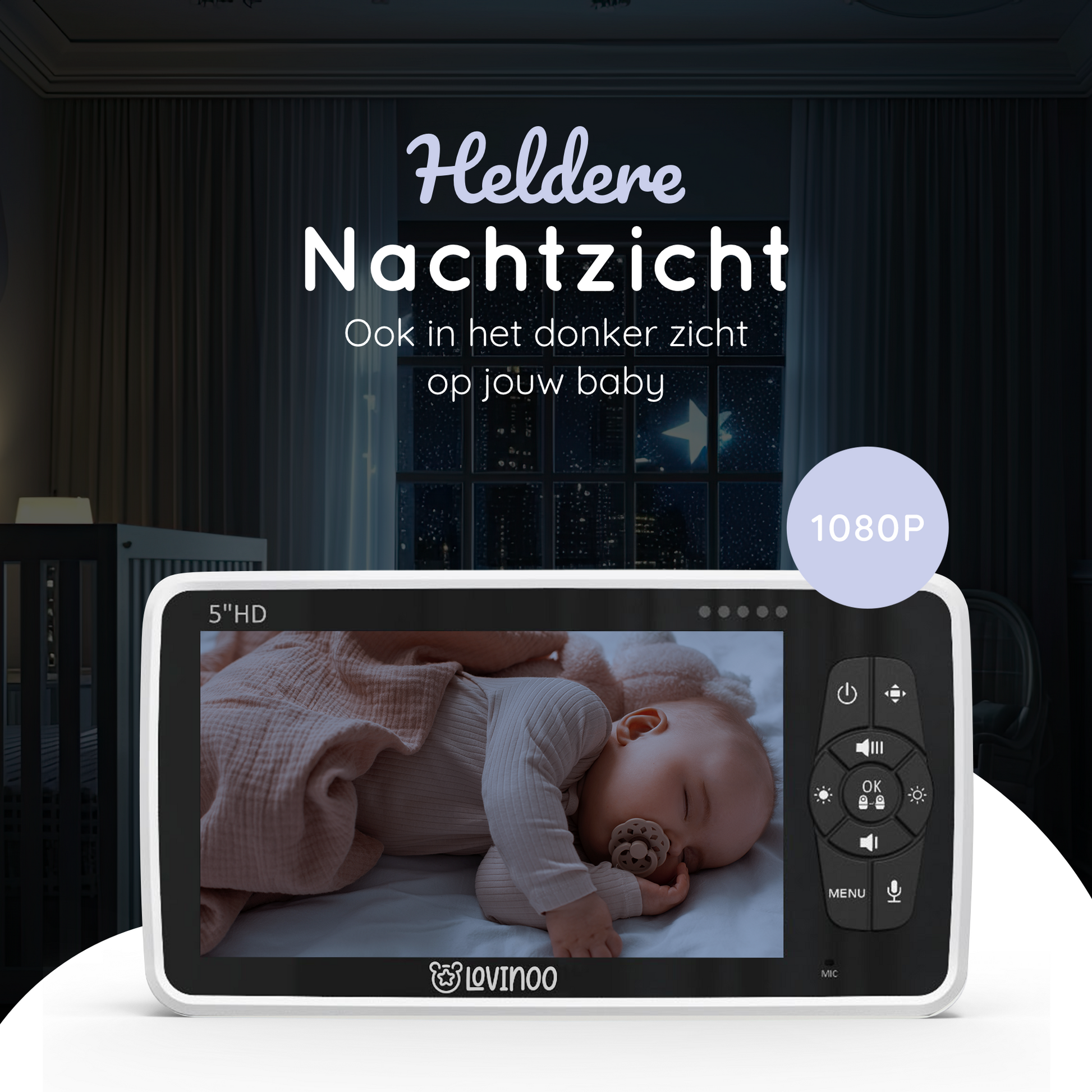 De Lovinoo Babyfoon 5 inch is ontworpen om u rust en vertrouwen te geven — precies wanneer u dat het meest nodig heeft. Het heldere kleurenscherm toont uw kindje haarscherp, zelfs in volledige duisternis dankzij de infrarood-nachtmodus. Zo blijft u altijd zeker dat uw kleintje veilig en comfortabel slaapt.
