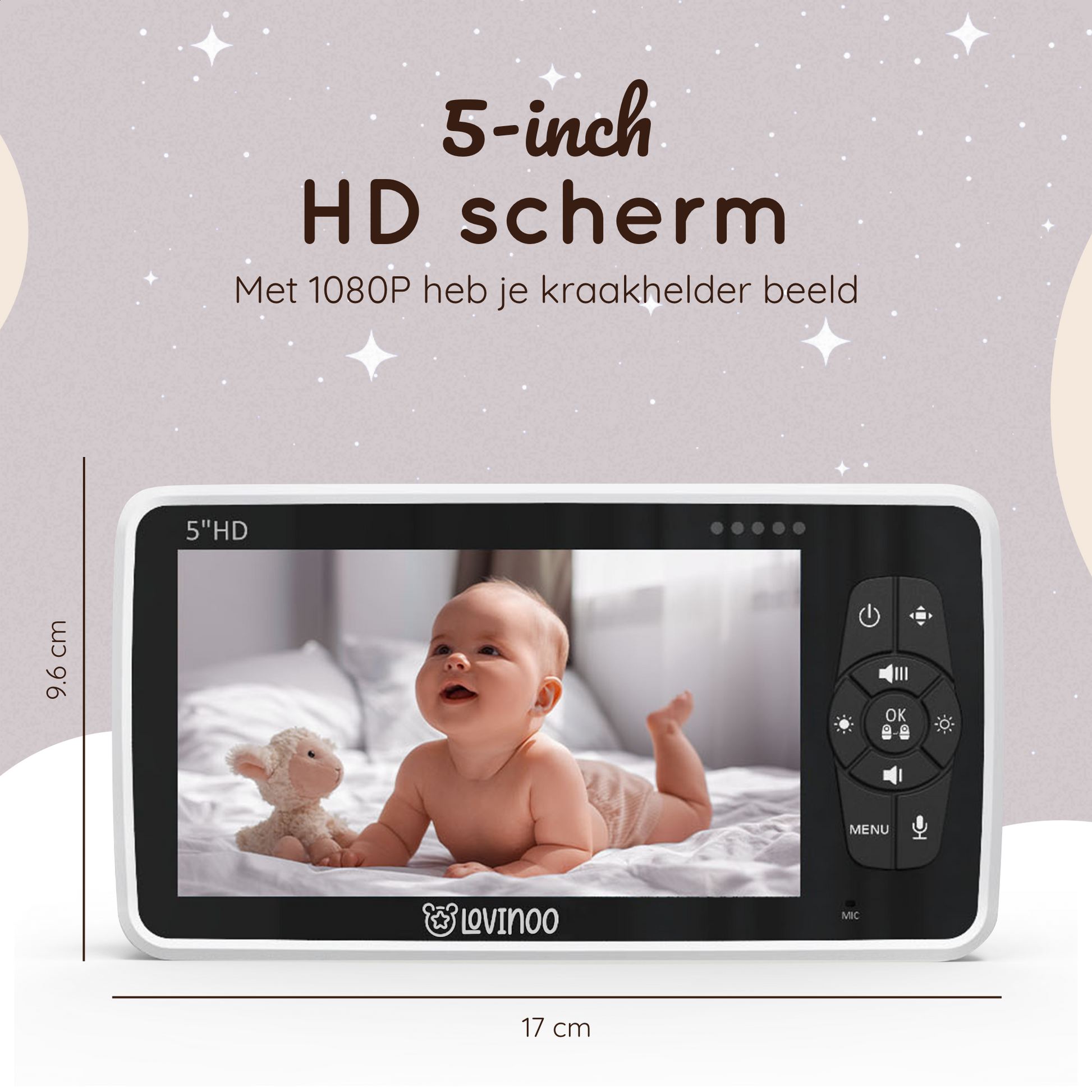 De Lovinoo Babyfoon 5 inch biedt helder beeld en geluid, zodat u uw kindje dag en nacht veilig kunt volgen. Dankzij de slimme technologie blijft u altijd verbonden met uw kleintje, met rust en zekerheid als resultaat.